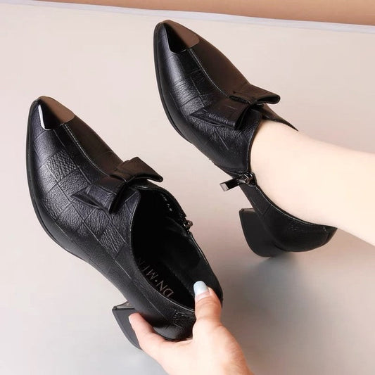 Zapatos de piel de mariposa de moda con tacón grueso.
