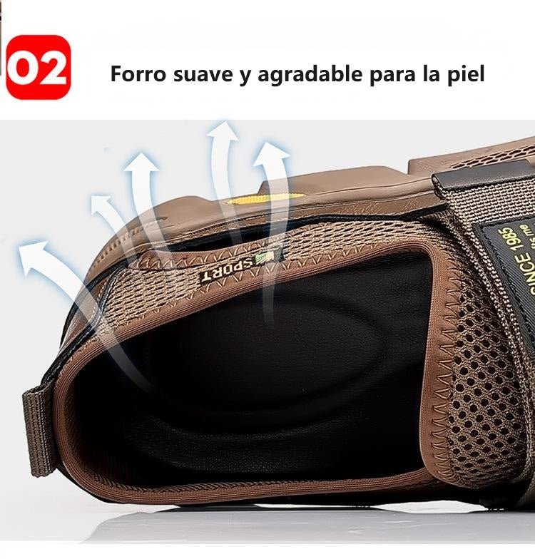 - Material: cuero genuino y malla